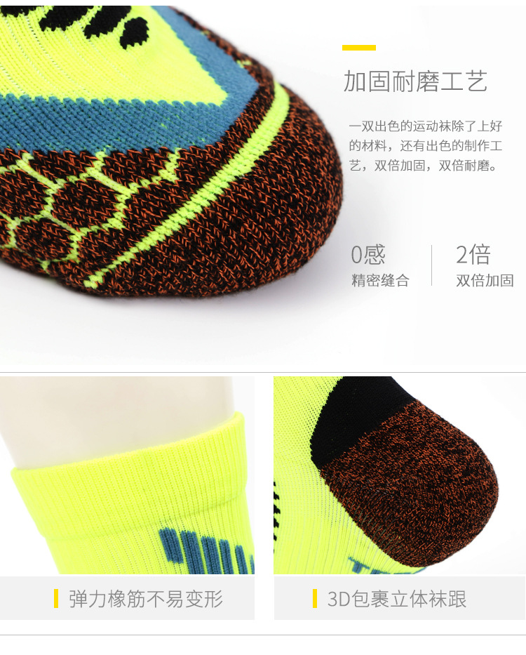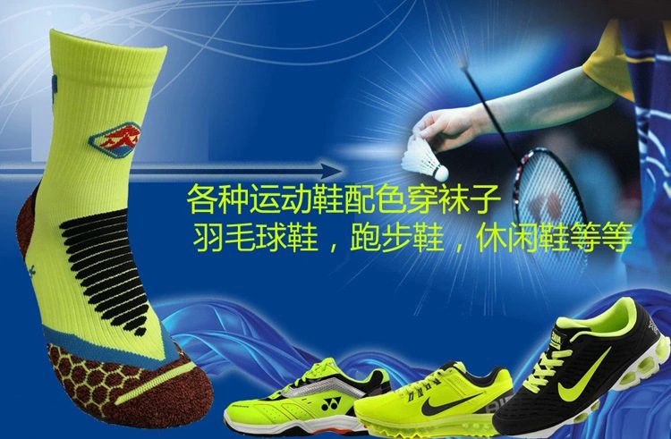 此款袜子,有跟,袜筒处有标志 袜子颜色亮丽,洋溢着青春、激情的运动气息 可以搭配各种运动鞋、羽毛球鞋、跑步鞋、休闲鞋等 脚底按摩功能,能有效防止脚部摩擦,保护双脚 袜身用舒适的氨纶橡筋编织,袜子紧贴脚部 脚底局部毛圈按摩脚底,能持久保持脚部干爽